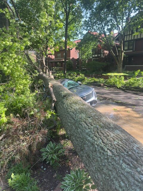 My car was fine and and we pulled some branches out of the road right away and some neighbors nearby started coming outside. People started walking out in a daze, just shocked…you could hear sirens all over, and it was just stunning. We didn’t know what had happened elsewhere yet (we were so very lucky compared to others, 5 people died, many lost their entire homes, I don’t think anyone in our neighborhood was injured) but we thought, we better walk over to Louie’s parents’ house to check on them, so we started doing that, which took us a little while and we kept getting sidetracked and having to step over major debris and trees. The trees were everywhere, across roads, fallen on homes, cars, pulling up sidewalks, causing water main breaks, etc.